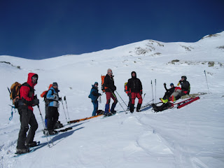 La baixada ens reconforta del esforç i podem enllaçar bons girs amb una neu, a les parts altes, excel·lent, fins tornar agafar la pista que ens porta al refugi, on a les 16 hores la temperatura era de -7,5º.