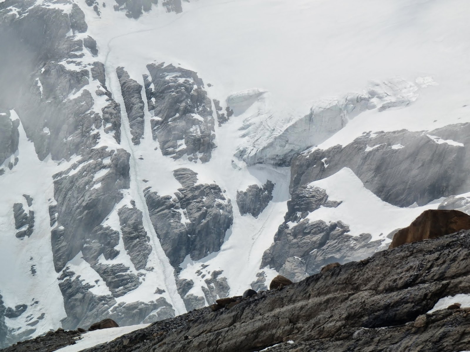 Superat el primer corredor creuem el glaciar en diagonal, cap al segond corredor.
